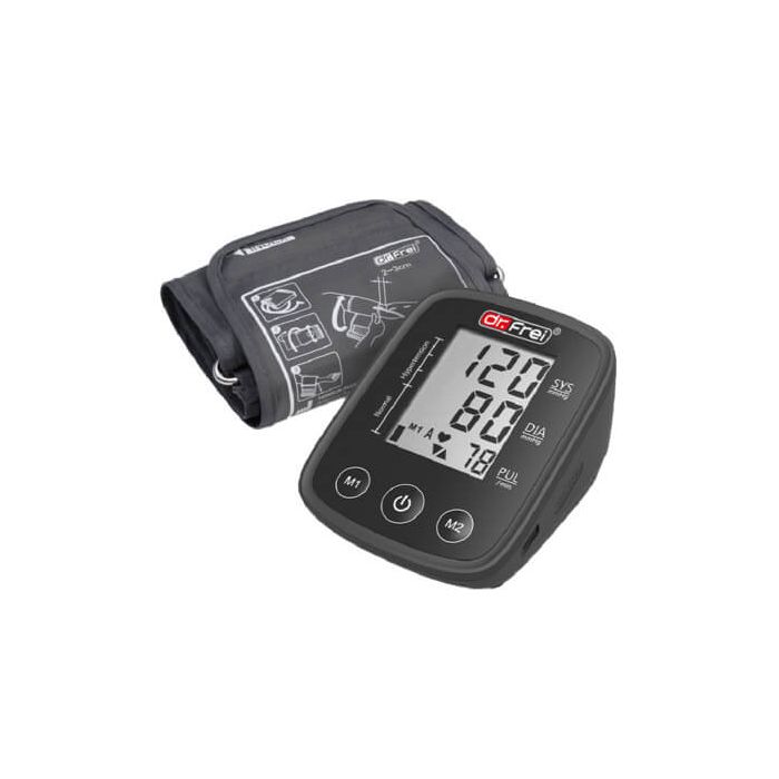 Dr. Frei M-PRIME e автоматичен апарат за измерване на кръвно налягане с индикатор за сърдечна аритмия и уголемен конусовиден маншет 22-42 см. Запаметяване на 90 стойности за двама потребители, изчислява средната стойност на 3 последни измервания. С включен адаптер и кабел. Автоматичен апарат за измерване на кръвно налягане Др. Фрей M-Прайм има индикатор за движение и индикатор на маншета. Калъф за съхранение. Гаранция 5 години.