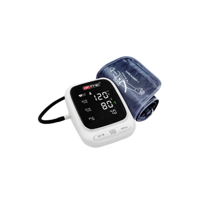 Dr. Frei M-PRO e автоматичен апарат за измерване на кръвно налягане с индикатор за сърдечна аритмия и уголемен конусовиден маншет 22-42 см. Запаметяване на 90 стойности за двама потребители, изчислява средната стойност на 3 последни измервания. С включен адаптер и кабел. Автоматичен апарат за измерване на кръвно налягане Др. Фрей M-Про има индикатор за движение и индикатор на маншета. Калъф за съхранение. LED дисплей. Гласово излъчване на английски език. Гаранция 5 години.