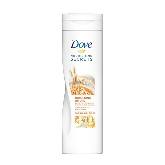 Dove Nourishing Secret Indulging Ritual Body Lotion e лосион за тяло с мляко от овес и акациев мед. Подходящ за всеки тип кожа. Специалната формула подхранва в дълбочина кожата. Овесът и медът са богати на хранителни вещества и естествено хидратират и поддържат кожата мека, еластична и красива. Дав Лосион за тяло с мляко от овес и акациев мед мигновено попива в кожата, без да оставя масни следи. Има успокояващ аромат, който глези сетивата. Подходящ за всекидневна употреба. Без парабени. Дерматологично тестван продукт.