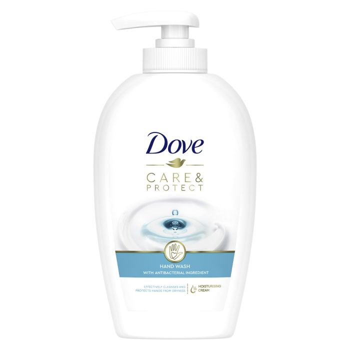 Dove Care & Protect Hand Wash With Antibacterial Ingredient e антибактериален течен сапун за ръце, обогатен с 1/4 хидратантен крем. Измива нежно и ефикасно, без да изсушава кожата на ръцете. Дав Кеър & Протект Антибактериален течен сапун за ръце се грижи да осигури безупречна хигиена, съчетана с деликатна грижа. Спомагат за запазване на естествената хидратация на кожата, като я прави по-мека, по-гладка и по-здрава. Нежният и деликатен аромат на сапуна оставя дълготрайно усещане за свежест и чистота. Подходящ за всекидневна употреба. Без парабени. Дерматологично тестван продукт.