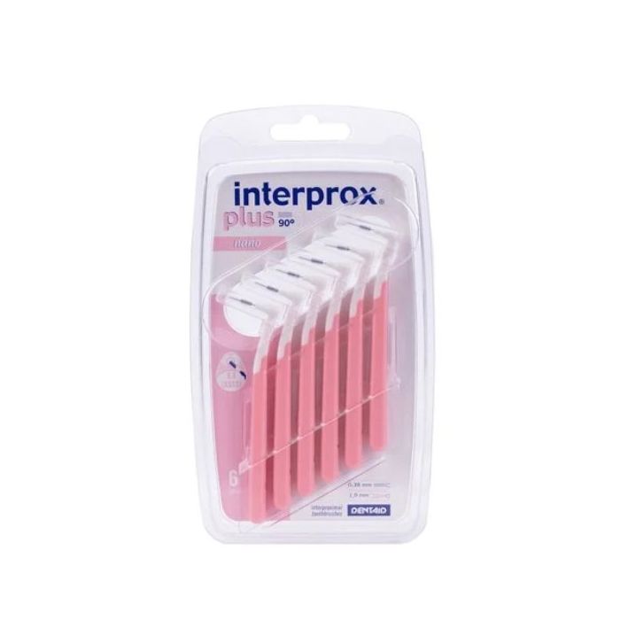 Interprox Plus Интердентални четки за зъби размер 0,6 мм 2G Nano x6 бр Dentaid са висококачествени четки за ефикасно почистване и отстраняване на плаката от откритите междузъбни пространства. Имат специална форма с извита шийка, така че да са удобни дори при първа употреба на четка от този тип. Съдействат за подобряването на оралната хигиена и постигането на оптимална чистота, като по този начин предпазват от развиването на инфекции в устната кухина. Интерпрокс Плюс Интердентални четки за зъби размер 0,6 мм Нано x6 бр Дентаид са подходящи за почистване между зъбите, около брекети, мостове и импланти. Изработени са от два вида влакна за максимален резултат и деликатна грижа за емайла. Четките осигуряват висок комфорт и прецизност, имат гъвкав дизайн и са изработени от качествени и издържливи материали.