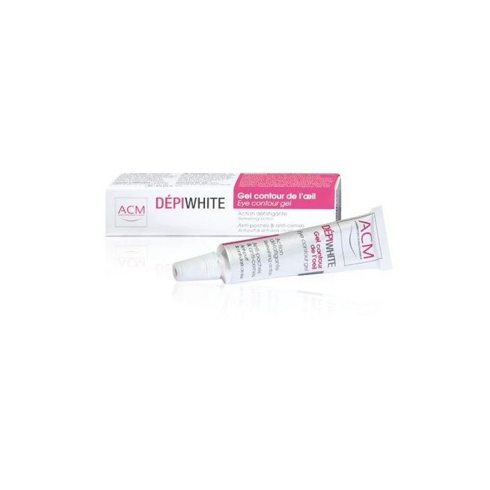 DepiWhite Eye Contour Gel ACM представлява страхотен крем за околоочения контур на лицето, който премахва подпухналостта и тъмните гръгове около очите, като същевременно погледа става сияен и красив. Тъмните кръгове и отоци около очите могат да бъдат причинени от дразнене на нежната кожа, умора, стрес, някои лекарства, възраст или поради отслабване на стените на кръвоносните съдове. Ако стените на кръвоносните съдове са слаби, може да се случи изтичане на червени кръвни клетки. Мощната формула на Депиуайт Депигментиращ околоочен крем АЦМ съдържа активни съставки растителен флавоноид, арбутин и екстракт от магданоз, дипептид, Pal-GHK Pal-GQPR, които имат избелващефект, отстраняват на течностите причиняващи подпухване около очите, преструктурират и придава на кожата около очите еластичност, твърдост и намалява бръчките. Депиуайт околоочен контур гел е предназначен за изсветляване на тъмните кръгове и намаляване на торбичките под очите, в резултат на което околоочната зона постига свеж и отпочинал вид.