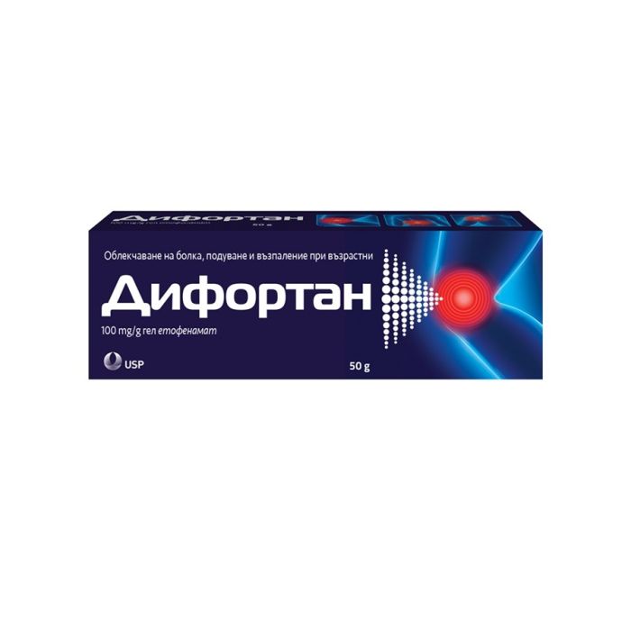 Дифортан е лекарствена формула, която съдържа етофенамат – локално нестероидно противовъзпалително средство (НСПВС) за облекчаване на мускулни и ставни болки. Гелът намалява болката, възпалението и отока, като се прилага директно върху болезнената зона. Дифортан е подходящ при болки в мускулите, ставите, гърба и кръста, както и при травми като навяхвания, разтежения и натъртвания. Ефективен е и при възпаления на сухожилията (тендинит) и ревматични заболявания като артрит и артроза.