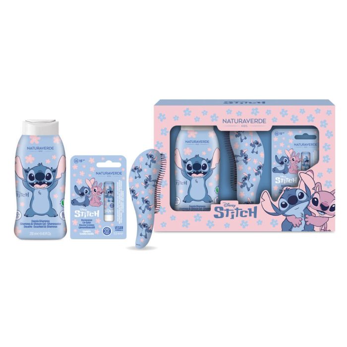 Комплектът съдържа: Naturaverde DISNEY Stitch Шампоан зa коса и тяло 250 мл 1 бр + Naturaverde DISNEY Stitch Балсам за устни 5 мл 1 бр + Подарък: четка за коса 1 бр.