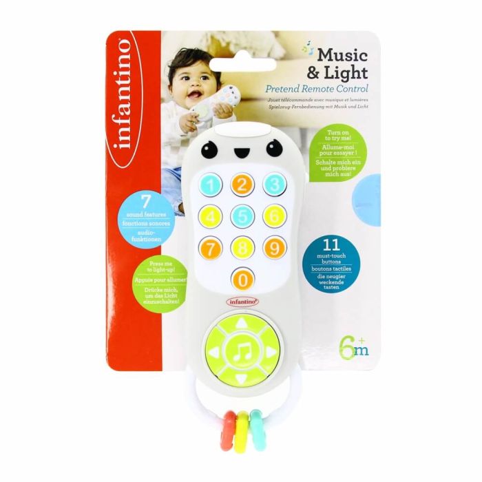 Това дистанционно Infantino е чудесен избор за ежедневни ролеви игри, които забавляват детето и едновременно подпомагат развитието на сетивата и уменията му по естествен и игрив начин.