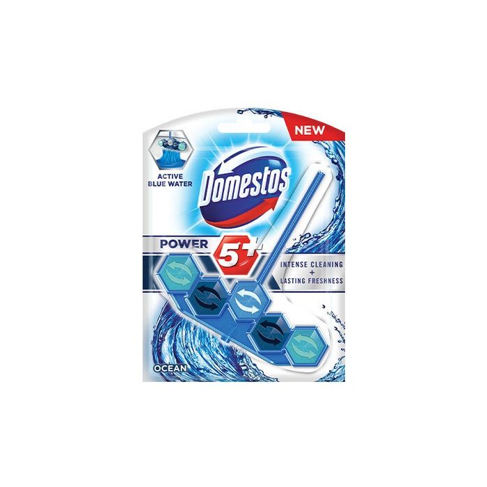 Domestos WC Power 5 Ocean Duo е твърдо тоалетно блокче, специално създадено да осигури блясък, чистота и продължителен ароматизиращ ефект на тоалетната чиния. Доместос Оушън Дуо Пауър 5 почиства, предотвратява отлагането на варовик и има дълготраен интензивен аромат.
