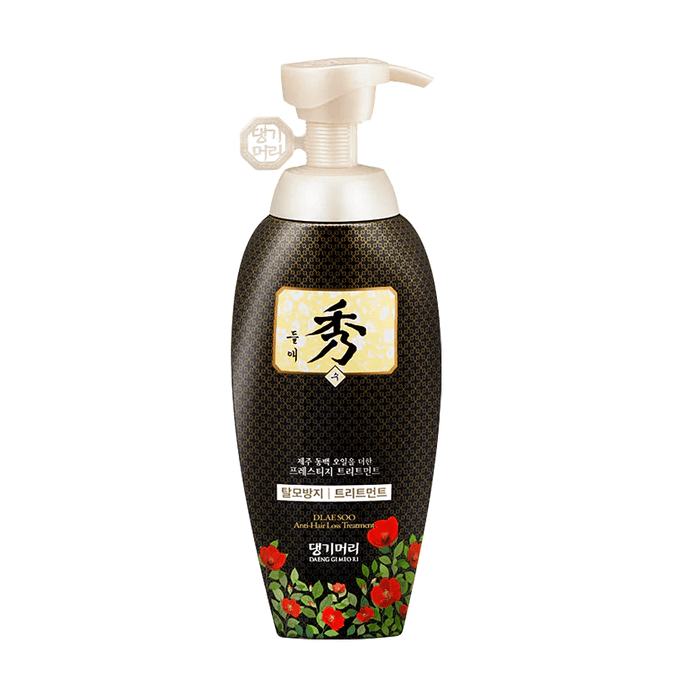 Doori Dlae Soo Hair Loss Care Treatment e интензивно подхранващ балсам-маска за хидратация и блясък на много увредена коса с концентрирано, над 33% съдържание на корейски лечебни билки. Гъстата текстура с наситен аромат прониква дълбоко в косъма, като интензивно хидратира и възстановява неговата структура. Добавената Salicylic Acid контролира симптомите на пърхот. Съдържа натурални екстракти от авокадо, камелия, сибирска хризамтема, жен-шен, адлай, ремания, източна туя, фо-ти корен, гъба рейши, див пелин, хутиния. Има изразен подхранващ ефект. Доори Кралска Камелия Интензивно подхранващ балсам-маска за хидратация и блясък не утежнява и не омазнява дори тънката косата.