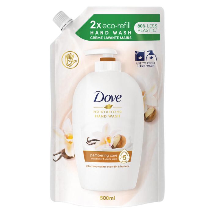 Dove Caring Hand Wash Течен сапун за ръце с масло от ший и ванилия 500 мл Пълнител