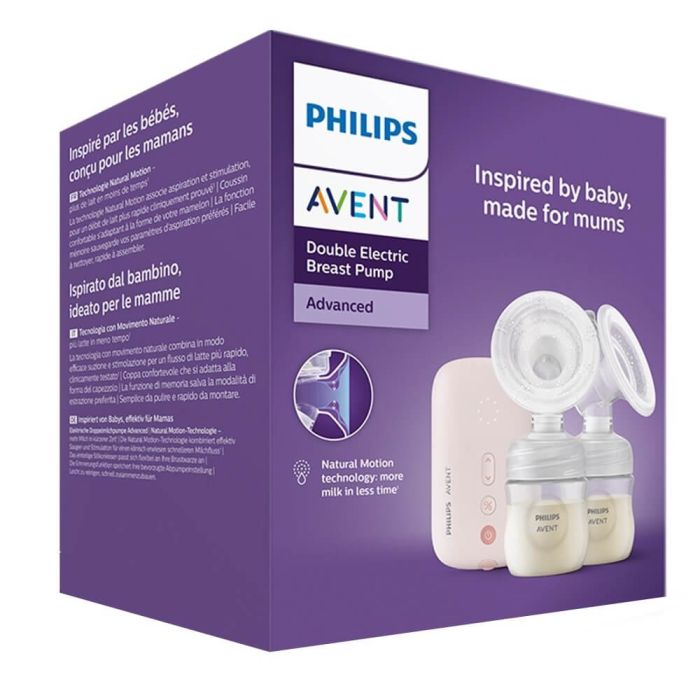 Двойна електрическа помпа за кърма Philips Avent SCF397/31 Advance представлява висококачествена електрическа помпа осигуряваща процес по изцеждане на кърмата, който максимално се доближава до кърменето, помпата не само засмуква, но и стимулира зърното. Двойна електрическа помпа за кърма Филипс Авент SCF397/31 Адванс осигурява удобство при използване и спомага за изцеждане на максимално голямо количество кърма. Когато използвате помпата не е необходимо да се навеждате, а по-бързото изцеждане е равносилно на по-малко време. Отличава се с кадифено мека повърхност, предоставяща усещане за топлина на кожата. Важна характеристика на помпата е и наличието на малко на брой отделни части, което улеснява ползването и почистването. Продуктът е много полезен за дами, които често изцеждат кърмата си, с него се работи лесно, изисква натискане само на един бутон. Има 8+16 нива за настройка, което дава възможност да бъде максимално персонализирана спрямо особеностите на вашето тяло. С функция за запаметяване за по-голямо удобство. Има опция за поставяне на пауза. Освен това помпата разполага с изключително тих режим на работа, което помага за комфорта на майката и бебето, когато то спи. Помпата се използва с кабел за захранване.