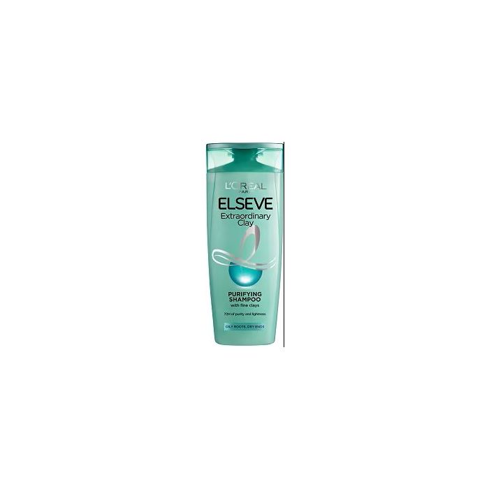 L'Oreal Elseve Extraordinary Clay Purifying Shampoo е шампоан за коса с мазни корени и сухи краища, който хидратира и почиства корените и скалпа. Уникалната му измиваща формула, която е обогатена с 3 вида глинa, спoмaгa зa почистването нa кocaтa, като същевремено подобрява структурата на косъма и състоянието на скалпа. Ултра леката и свежа консистенция осигурява дълбока хидратация на косъма, дължаща се на вложената синя глина. Формулата дава усещане за чистота на скалпа до 72 часа. Шампоанът е богат на зелена глина, която помага за пречистване на корените. По този начин се предотвратява неприятното сплъстяване, получено вследствие на омазняване. Добавената бяла глина осигурява подхранване на косъма и помага за възстановяването му. Формулата, лишена от силикони, възвръща мекотата и еластичността на косата, като в същото време ѝ придава здравословен блясък. Лореал Елсев Екстраординари Ойл Клей Шампоан е с пречистващо действие и осигурява дълбока грижа, като подхранва всеки косъм от корена до върха. След употребата на шампоана косата е чиста, блестяща и хидратирана. Без силикони. Дерматологично тестван продукт.