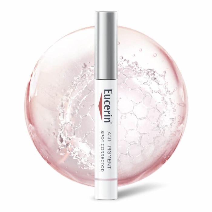 Eucerin Anti-Pigment Spot-Corrector е висококачествен спот-коректор за лице, който е специално предназначен за пигментирана кожа. Eucerin Anti-Pigment спот коректор е прозрачен гел с немазна консистенция. Коректорът е с локален апликатор, който улеснява прецизното нанасяне директно върху малки зони с хиперпигментации. Специалната формула съдържа Thiamidol, който редуцира прекомерното производство на меланин - основният причинител на тъмните петна. Съставката намалява пигментирането и предотвратява повторната поява на петна. Еуцерин (Юсерин) Анти-Пигмент спот-он коректор изравнява тена и подобрява вида на кожата. Без парабени. Дерматологично тестван продукт. Некомедогенен.