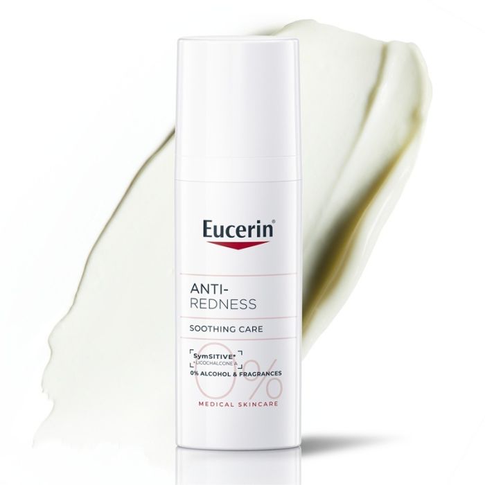 Eucerin Anti-Redness Soothing Care Cream е разработен специално за много чувствителна и склонна към зачервяване кожа, включително при розацея или купероза. При редовна употреба подпомага намаляването на зачервяването, защитава кожата и ограничава появата на раздразнения. Формулата съдържа комбинация от две активни съставки – SymSitive* и Ликохалкон А. SymSitive* въздейства директно върху нервните окончания в кожата. По този начин намалява неприятните усещания и повишава поносимостта на свръхчувствителната кожа към външни фактори. Ликохалкон А е натурален компонент, извлечен от корена на женско биле. Той притежава едновременно антиоксидантни и противовъзпалителни свойства, които подпомагат редуцирането на зачервяването и успокояват раздразнената кожа. Еуцерин (Юсерин) Анти-Реднес Успокояващ дневен крем против зачервяване е с максимално изчистена формула, в която са използвани ограничен брой съставки. Опаковката е иновативна и предпазва продукта от замърсяване и окисляване. Без парабени. Дерматологично тестван продукт. Некомедогенен.