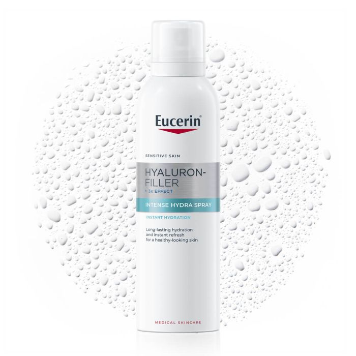 Eucerin Hyaluron Mist Spray е спрей за лице с хиалурон, който осигурява бърза и дълготрайна хидратация на кожата и облекчава усещането за иритация. Продуктът попива бързо и не съдържа добавени аромати. Дерматологичните проучвания показват висока ефективност дори и при чувствителна кожа. Специалната формула на спрея е обогатена с хиалуронова киселина, която спомага за интензивна хидратация на кожата с незабавен ефект. След употребата на Еуцерин (Юсерин) Хиалурон Спрей с хиалуронова киселина кожата е гладка, свежа и с лъчезарен блясък. Без парабени. Дерматологично тестван продукт. Некомедогенен.