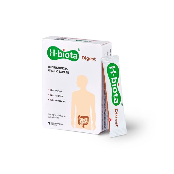 H-biota Digest е продукт, създаден за поддържане на чревното здраве чрез въздействие на чревната дисбиоза и възстановяване на чревната микробиота. Ейч Биота Дайджест е с патентована и научно разработена комбинирана формула от пробиотици, пребиотик и цинк с клинично доказан ефект. Трите пробиотични щама стимулират растежа на полезни микроорганизми, подобряват храносмилането и усвояването на хранителните вещества, укрепват имунната система. Пребиотикът инулин подпомага растежа на добрите бактерии. Не съдържа алергени, глутен, лактоза и ГМО.