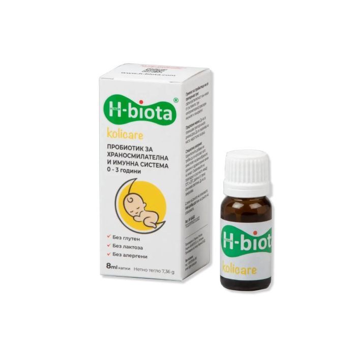 H-biota kolicare е пробиотична хранителна добавка за деца от 0 до 3 години. Комбинацията от двата щама е специално селектирана и лабораторно проучена, заради синергичните си ползотворни ефекти върху детското здраве. Благодарение на специфичния си механизъм на действие, H-biota® kolicare показва сходни благоприятни ефекти при деца, родени по нормален механизъм или чрез секцио, изкуствено хранени и кърмени от 0+ месеца. Ейч Биота Коликеър е с патентована, научно разработена и клинично доказана формула. Двата бактериални щама са изолирани от здрави бебета и доказано оцеляват в кисела стомашна и жлъчна среда. Те допринасят за развитието на чревната микробиота, като увеличават популациите на бифидобактерии и колонизацията на други добри бактерии. Повлияват благоприятно храносмилателната система чрез синергичните си ползотворни ефекти върху детското здраве. В допълнение, Витамин D допринася за нормалната функция на имунната система.