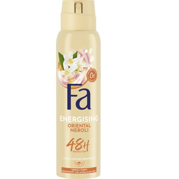 Fa Oriental Moments Scent Anti-Perspirant Spray 48h е део спрей против изпотяване за жени, предназначен за ежедневна употреба, който неутрализира неприятните миризми и поддържа подмишниците сухи за дълго време. Фа Ориентал Моментс Део спрей против изпотяване за жени има активна формула Protectivе, която предпазва от изпотяване до 48 часа. Притежава флорален аромат на роза от пустинята и сандалово дърво, който осигурява дълготрайно чувство за свежест. Не оставя петна по дрехите. Дерматологично тестван.