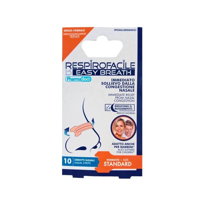 Pharmadoct Easy Breath Пластири за нос за спокоен сън осигуряват незабавно облекчаване на запушен нос. Подобряват дишането, като прочистват ноздрите и прекъсват оралното дишане, като помагат за избягване на хъркането. Полезни са и при запушен нос поради грип или алергии. Фармадокт Ийзи Брийт Пластири за нос за спокоен сън са подходящи за употреба от възрастни и деца над 5 години.