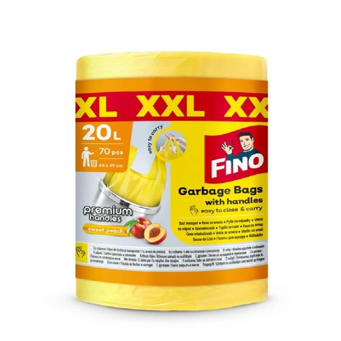 Fino Smart Handles торби за смет са с практични дръжки и са най-добрият избор за удобно и лесно затваряне, поддържане и носене. Те са изключително здрави, решени в свеж жълт цвят. Тези торби са идеални за по-широките кухненски кошове и също така се използват често в офис среда. Фино Цветни торби за смет с дръжки са с аромат на праскова.