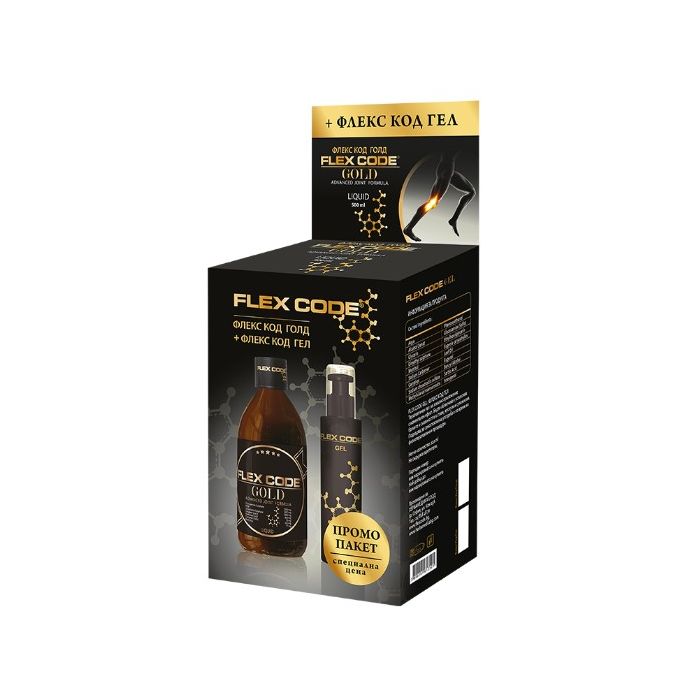 Комплектът съдържа: Herbamedica Flex Code Gold Сироп при ставни и артритни заболявания 500 мл 1 бр и Herbamedica Flex Code Gel Терапевтичен гел за стави и мускули 110 мл 1 бр