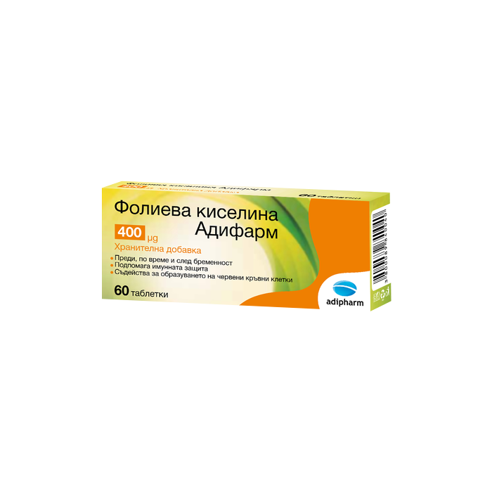 Фолиева киселина Адифарм при бременност 0,4 мг х60 таблетки Adipharm