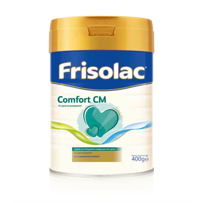 Frisolac Comfort CM Храна за специални медицински цели за инстантно приготвяне е подходяща за диетотерапия на кърмачета с колики (болки в корема, газове, метеоризъм). Фризолак Комфорт CM съдържа всички есенциални витамини, минерали, аминокиселини и мастни киселини, необходими за здравословното развитие на кърмачетата и отговаря на специфичните им хранителни нужди. Съдържа DHA (Докозахексаенова к-на) съгласно изискванията на Европейското законодателство относно млеката за кърмачета. Frisolac Comfort CM е подходящ да задоволи специфичните хранителни потребности на кърмачетата от момента на раждането, когато те не са кърмени. Да се прилага по препоръка на педиатър и под постоянно лекарско наблюдение. Подходящ е като единствен източник на храна за кърмачетата през първите шест месеца от раждането им и като част от смесеното хранене от 6-тия месец нататък.