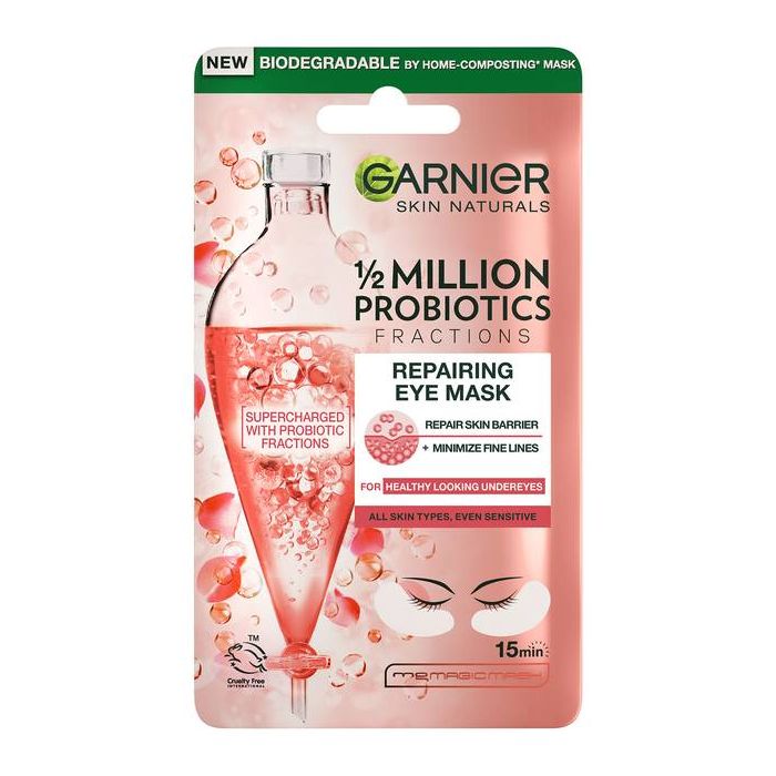 Garnier Skin Naturals Probiotics Repairing Eye Mask представлява висококачествена иновативна маска за обновяване на кожата на околоочния контур. Гарние Скин Нейчърълс Пробиотикс Маска за очи е подходяща за всеки тип кожа. Специалната формула е обогатена с 1/2 милион пробиотични фракции, които спомагат за интензивно обновяване и укрепване на околоочния контур. Дерматологично и офталмологично тестван продукт.