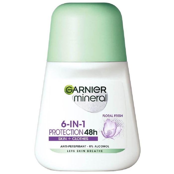 Garnier Mineral Protection 6 Floral Fresh Anti-Perspirant е дезодорант рол-он за жени против изпотяване, предназначен за ежедневна употреба. Гарние Минерал Протекшън 5 Флорал Фреш Дезодорант рол-он против изпотяване за жени се грижи не само за вашата кожа, но и за дрехите ви. Той предпазва от изпотяване и влажни петна, благодарение на включения във формулата му естествено абсорбиращ минералит. Добавеният екстракт от моринга, притежаваща пречистващи и детоксикиращи свойства. Леката формула оставя деликатната кожа на подмишниците да диша и не предизвиква раздразнения, дори и след бръснене, защото не съдържа етилов алкохол. Дезодорантът предпазва от неприятни миризми в продължение на 48 часа и оставя лек дискретен аромат. Подходящ за всеки тип кожа. Дepмaтологично тecтвaн продукт.