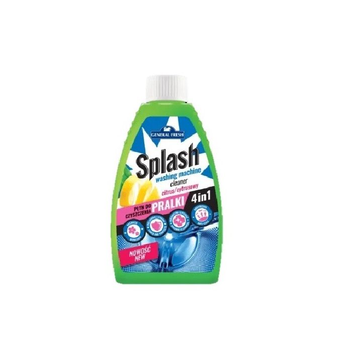 General Fresh Splash Препарат за почистване на перална машина цитрус премахва котлен камък и предотвратява образуването на нов котлен камък по вътрешните части на пералнята. Дженерал Фреш Сплаш Препарат за почистване на перална машина цитрус осигурява свеж аромат, елиминира неприятните миризми, осигурява хигиенично почистване и убива бактериите. Съдържа специални компоненти, които предпазват пералнята от корозия, удължавайки живота ѝ.