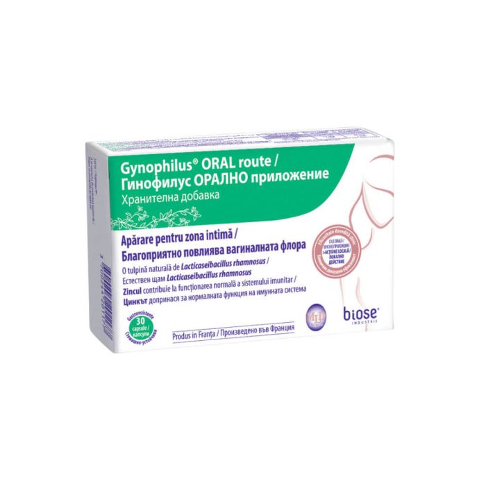 Gynophilus Oral е хранителна добавка, която благоприятно повлиява и подпомага балансирането на вагиналната флора, известна още като вагинална микробиота. Интимното здраве зависи от защитната микробиота и имунната защита, които образуват защитна бариера за интимната зона. Гинофилус за орално приложение съдържа щама Lacticaseibacillus rhamnosus Lcr35® и цинк, които действат синергично за възстановяване на баланса и комфорта в интимната зона. Стомашно-устойчива капсула.