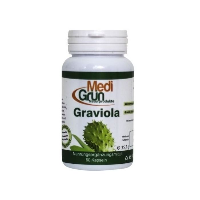 Graviola Medi Gruen е хранителна добавка с екстракт от гравиола (Annona muricata), тропическо растение с високо съдържание на биоактивни съединения и антиоксиданти. Формулата подпомага имунната система, защитава клетките от оксидативен стрес и допринася за поддържане на нормалната функция на нервната система и кръвното налягане. Гравиола Меди Груен е подходяща за подкрепа на общия тонус и жизненост на организма.