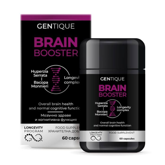 Gentique Longevity Program Brain Booster представлява хранителна добавка, насочена към стимулиране на мозъчната дейност. Спомага за запазване на нормалната когнитивна функция с напредването на възрастта.