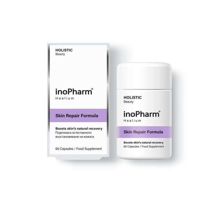 InoPharm Skin Repair Formula e хранителна добавка, която подпомага естествените процеси на регенерация и защита на кожата. Активните съставки допринасят за подхранването на кожата, подобряват нейната еластичност и поддържат здравословната й текстура. Инофарм Грижа за здрава кожа съдейства за възстановяването на кожната бариера на клетъчно ниво и подпомага естествения имунен отговор на кожата.