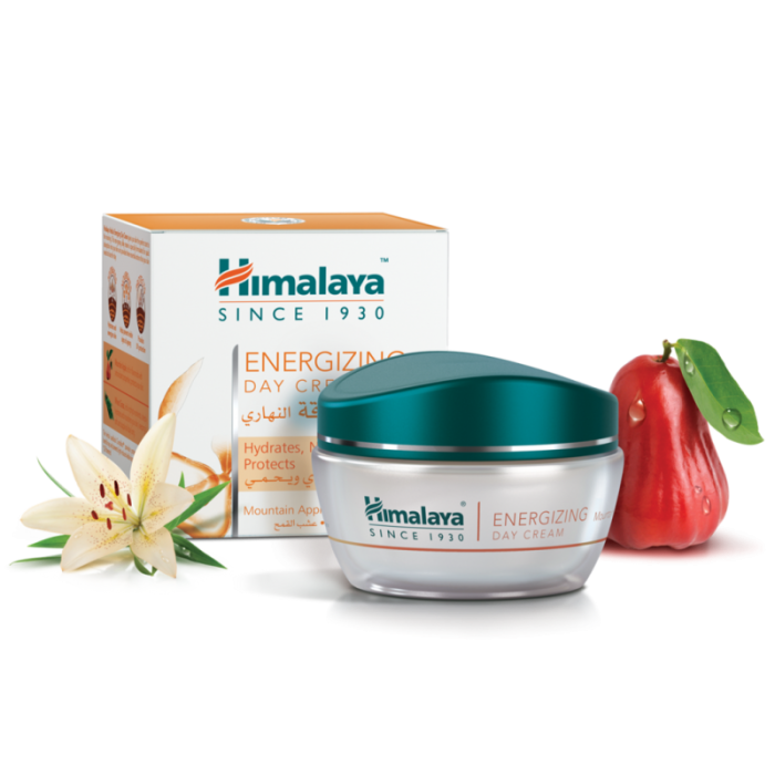 Himalaya Energiziing Day Cream e енергизиращ дневен крем за лице, подходящ за всеки тип кожа. Хималая Енергизиращ дневен крем за лице хидратира и подхранва кожата на лицето, като същевременно с това предпазва кожата от преждевременно стареене. Изключително подходящ за ежедневната грижа към кожата и се препоръчва когато кожата е уморена и без тонус. Съдържа уникална комбинация от активни съставки: джинджифилова лилия, галангал и бадем, които хидратират и подхранват кожата на лицето и придават свеж и отпочинал вид. Кремът на Хималая има UV защита, която предпазва кожата от вредното влияние на слънчевите лъчи и забавя стареенето. Кремът има изключително лека, приятна и немазна текстура, която бързо се абсорбира от кожата. С невероятен свеж и приятен аромат, което го прави едно истинско удоволствие за сетивата. Без парабени. Дерматологично тестван продукт.