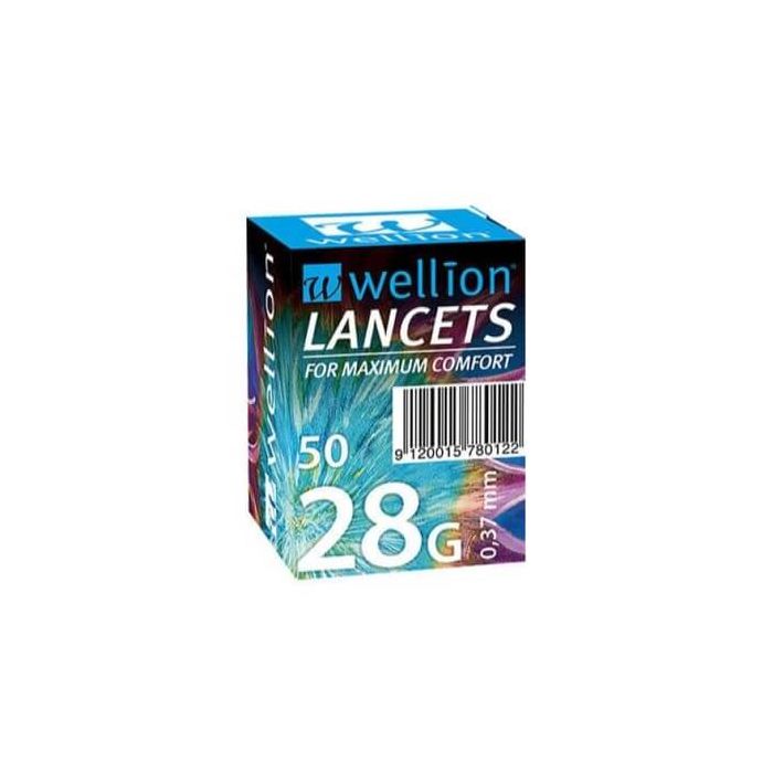 Wellion Lancets са стерилни ланцети за кръвна захар, предназначени за убождащо устройство. Те са много тънки, което осигурява почти безболезнено взимане на кръв. Ланцетите са снабдени с безопасно капаче, запазващо тяхната чистота и за защита от случайно убождане при поставяне. Уелиън Стерилни игли са предназначени за убождащо устройство Wellion, но са подходящи и за всички стандартни убождащи устройства. Размер: 28G, 0.37мм (по-големи). Предлага се в опаковка от 50 броя.