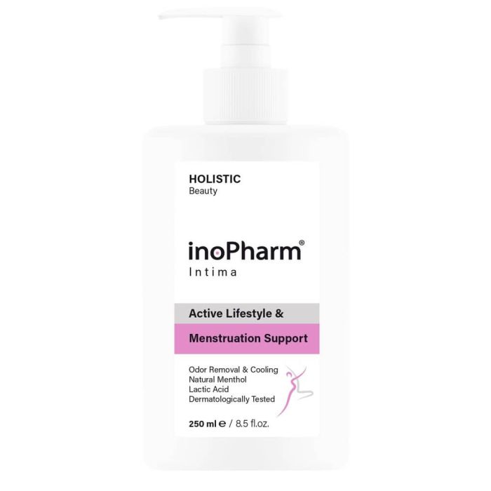 InoPharm Intima Active Lifestyle & Menstruation Support е интимен гел за допълнителна грижа при интензивен начин на живот и период на менструация. Допринася за поддръжката на балансирано pH и хигиена на интимната зона, както и за премахването на нежеланите миризми. Инофарм Интимо Интимен гел при активен живот и ментруация е създаден да успокоява и да поддържа свежестта и хидробаланса на нежната интимна зона. Дерматологично тествана формула, подходяща за ежедневна употреба.