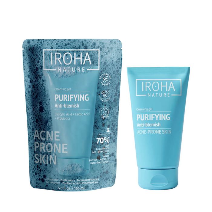 Iroha Nature Acne Prone Skin Purifying Cleansing Gel e измивен гел за лице за мазна кожа, който почиства кожата в дълбочина и предотвратява появата на пъпки и несъвършенства без да дразни и зачервява кожата. Регулира себумната секреция. Намалява появата на пъпки и черни точки. Благодарение на съдържащите се в него пробиотици, подсилва кожната бариера и хидратира. Ироха Нейчър Измивен гел за лице за мазна кожа съдържа 90% съставки с натурален произход. Подходящ за склонна към акне кожа. Без парабени. Дерматологично тестван продукт.