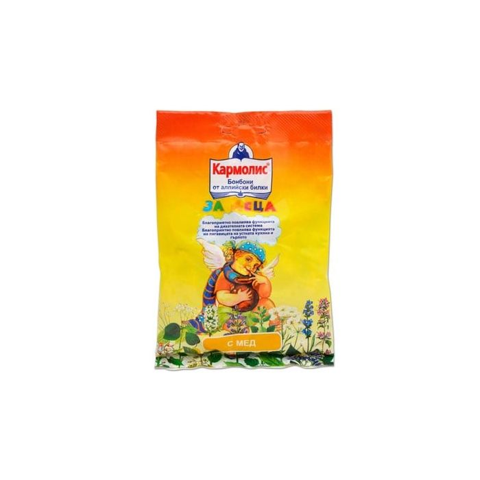 Кармолис Билкови бонбони с мед за деца са билкови бонбони, приготвени по специална рецепта с мед и 10 билки. Подходящи са за облекчаване на гърлобол и при кашлица на деца над 3 г. Имат приятен вкус и аромат. Кармолис Билкови бонбони с мед за деца имат противовъзпалителни, антисептични, отхрачващи и антибактериални качества. Те подкрепят здравето на имунната система и съдействат за повишаване на защитните сили на организма.