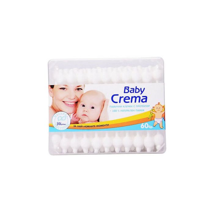 Agiva Baby Crema Клечки за уши са специално изработени клечки за уши, които са подходящи за ползване за бебета и малки деца. Агива Бейби Криим Клечки за уши се отличават със своите специални меки накрайници от 100% естествен памук, които разполагат с протектор за безопасно почистване ушите на бебето. Клечките осигуряват безопасна и ефективна ушна хигиена за детските уши.