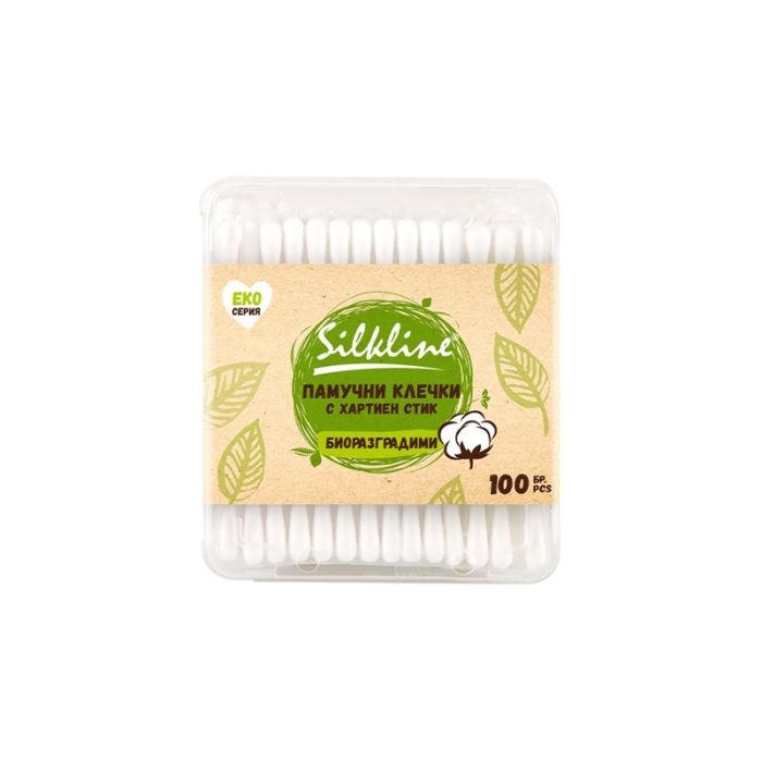 Silkline Клечки за уши Кутия са клечки изработени от висококачествен памук с хартиена клечка. Силклайн Клечки за уши Кутия са биоразградими, разположени в практична кутия за съхранение. Подходящи за ежедневна употреба.