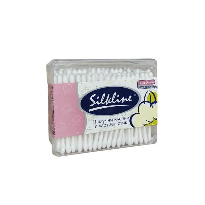 Silkline Клечки за уши Кутия са клечки изработени от висококачествен памук с хартиена клечка. Силклайн Клечки за уши Кутия са биоразградими, разположени в практична кутия за съхранение. Подходящи за ежедневна употреба.