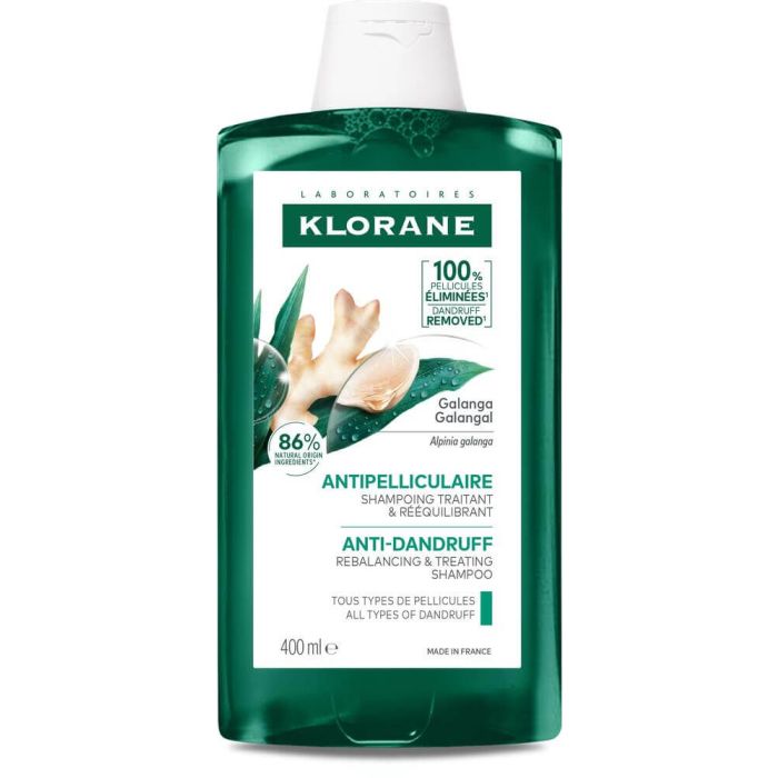 Klorane Anti-Dandruff Rebalancing & Treating Shampoo e шампоан с галанга, който премахва пърхота и предотвратява повторната му поява, като същевременно успокоява и почиства скалпа. Екстрактът от галанга намалява лющенето, регенерира и подхранва космения фоликул. След употреба, косата е чиста, мека и с блясък. Скалпът е успокоен и пречистен. Клоран Ребалансиращ и третиращ шампоан против пърхот с галанга е подходящ за честа употреба. Съдържа 87% съставки от натурален произход и има биораградима веган формула. Без парабени. 0% сулфатирани сърфактанти, силикони и минерални масла. Дерматологично тестван продукт.