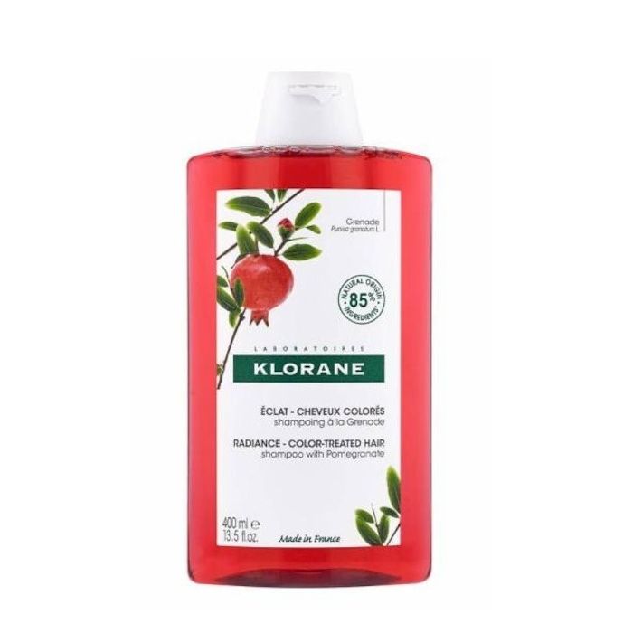 Klorane Protective Shampoo with Pomegranate for Color-Treated Hair е шампоан с нар, предназначен специално за боядисана коса, който почиства косата и я предпазва от загубата на цвят и блясък. Цветът на косата се запазва за дълго време. Благодарение на измиващата основа, обогатена с възстановяващи агенти, косата остава копринено мека и лесна за оформяне. Специалната формула съдържа уникална комбинация от активни съставки. Богат на танини, екстрактът от нар притежава адстрингентни свойства, благодарение на които фиксира цвета в кератина, и така запазва цвета на боята за по-дълго време. Клоран Защитен шампоан с нар за боядисана коса има мека измиваща основа, която бързо възстановява косата, като й придава блясък и мекота. Без парабени. Дерматологично тестван продукт.