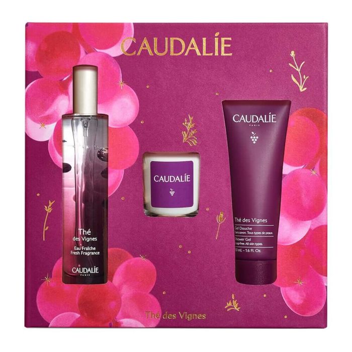 Комплектът съдържа: Caudalie Thе des Vignes Тоалетна вода със свеж аромат 50 мл 1 бр + Caudalie The des Vignes Душ гел с бял мускус, нероли и джинджифил 50 мл 1 бр + Подарък: Thе des Vignes Ароматна свещ 35 г 1 бр.