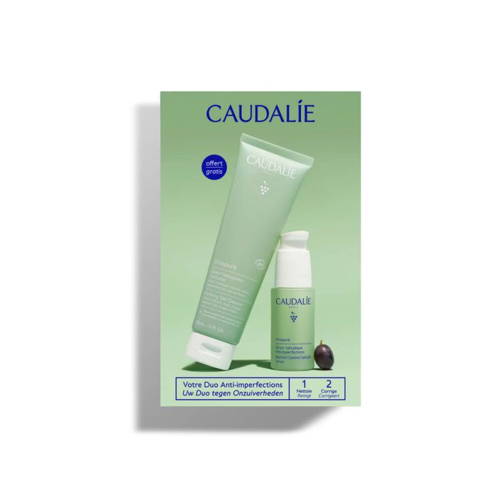 Комплектът съдържа: Caudalie Vinopure Салицилов серум против несъвършенства 30 мл New 1 бр + Caudalie Vinopure Почистващ матиращ гел 150 мл New 1 бр.
