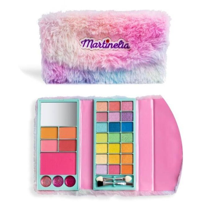 Martinelia Circus Палитра детски гримове с калъф е подходяща за деца над 3 години. Детската палитра с гримове е предназначена за малките кокетни госпожици, които обожават да се разкрасяват. Мартинелиа Цирк Палитра детски гримове с калъф съдържа всичко необходимо за една завършена визия. Ще откриете 21 сенки за очи , 5 ружа и бронзанти, 3 гланца за устни, 2 апликатора за лесно нанасяне, 1 четка, всички събрани в красива мека кутия. Тя е със забавен дизайн, които дава възможност на малките кокетни госпожици да развихрят въображението си.
