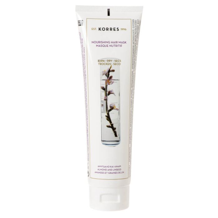 Korres Dry and Damaged Hair Mask е подхранващa и възстановяващa маска с бадеми и ленено семе за суха и увредена коса. Коррес Маска за суха и изтощена коса с бадем и ленено семе предотвратява накъсването на косата и появата на цъфтящи краища. Улеснява разресването. Съдържа 90% съставки от естествен произход. Веган. Не съдържа натриев лаурет сулфат, силикон, минерално масло, фталат и парабени. Дерматологично тестван продукт.
