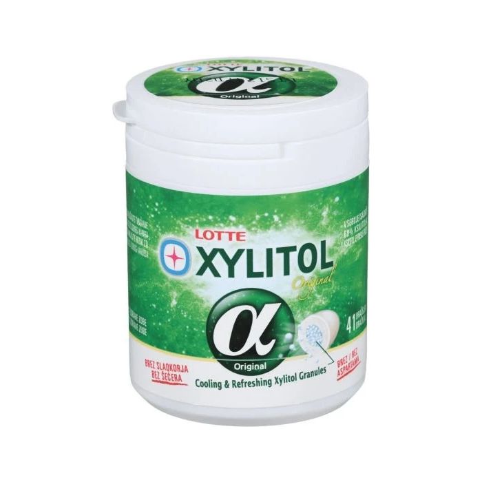 Xylitol Alpha Original Gum представляват дъвки с ксилитол без захар с изразено антибактериално действие. Лотте Ксилитол Алфа Оригинал дъвки с ксилитол дават нужната доза свежест навсякъде и по всяко време. Те са ефективни срещу образуването на кариес, зъбен камък, налепи от храна и лош дъх. Служат за естествена профилактика срещу парадонтит. Предлагат се в удобна и практична опаковка от 41 дражета.