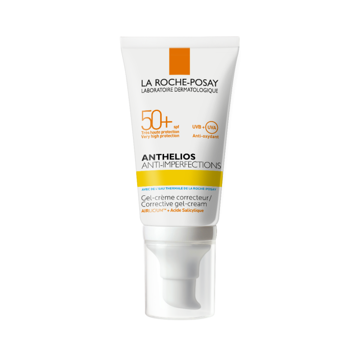 La Roche-Posay Anthelios Anti-Imperfections Gel-Cream SPF50+ представлява ежедневен слънцезащитен гел-крем с много висока слънцезащита, подходящ за мазна, склонна към акне, несъвършенства и белези, предизвикани от UV лъчите кожа. Осигурява на кожата висока широкоспектърна UVA/UVB защита (по-стриктна от Европейските препоръки за слънцезащитните продукти), както и защита от някои Infrared-A лъчи, благодарение на патентованата филтърна система XL-Protect, комбинирана с термална вода La Roche-Posay. Термалната вода La Roche-Posay, съдържаща се в продукта успокоява, хидратира и има мощно антиоксидантно действие. Специалната формула защитава кожата от фотостареене, причинено от слънчевите лъчи, от замърсявания и от неблагоприятното влияние на околната среда. Формулата, обогатена с SALICYLIC ACID & NIACINAMIDE, се бори с несъвършенствата и с повторната им поява. Ла Рош-Позе Антелиос Слънцезащитен Гел-Крем при несъвършенства SPF50+ има AIRLICIUМ технология с матиращи микро-частици, която веднага попива себума за дълготраен ефект. Крем-гелът Anthelios Anti-imperfection е подходящ за употреба на места с екстремно слънчево греене и е много устойчив на вода. Има изключително лека и немазна текстура. Дерматологично тестван продукт. Некомедогенен.
