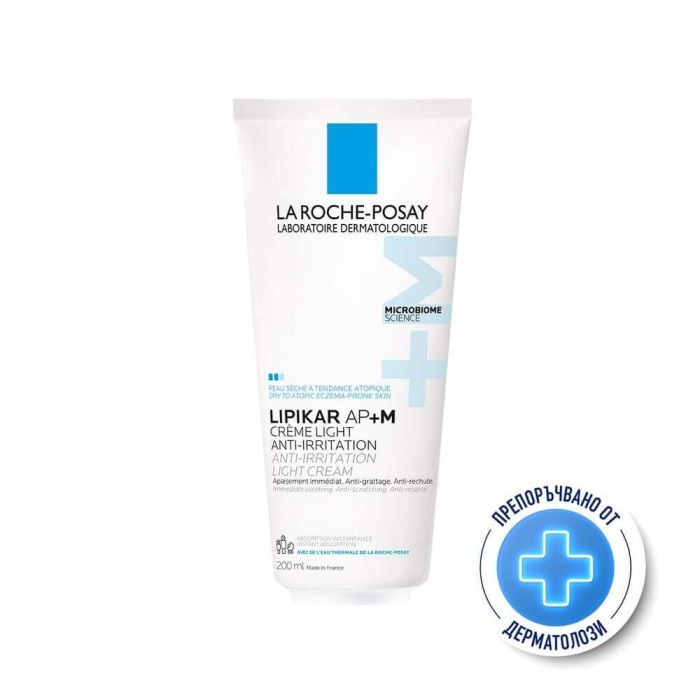 La Roche-Posay Lipikar Creme Light AP+ M е лек балсам, който бързо успокоява кожата и намалява усещането за сърбеж. Ефикасен срещу повторна поява. Формула за бебета, деца, възрастни с много суха кожа, склонна към атопия и алергии. За лице и тяло. Ла Рош-Позе Липикар АР+ М Лек успокояващ балсам за лице и тяло подхранва кожата и възстановява кожната бариера. Подходящ за хора, подложени на онкологична терапия. Леката текстура попива бързо, без да оставя след себе си лепкав слой или омазняване. Без парбени. Дерматологично тестван продукт. Некомедогенен.