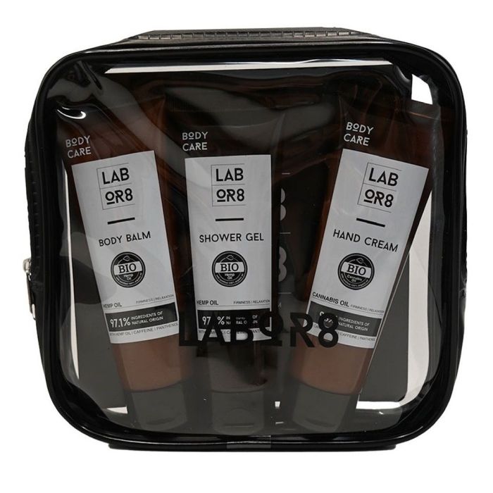 LABOR8 Комплект за пътуване с несесер (душ гел+балсам за тяло+крем за ръце)